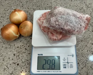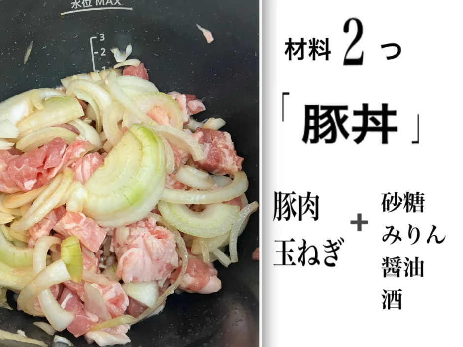 1.豚肉 約300g 玉ねぎ 小3個